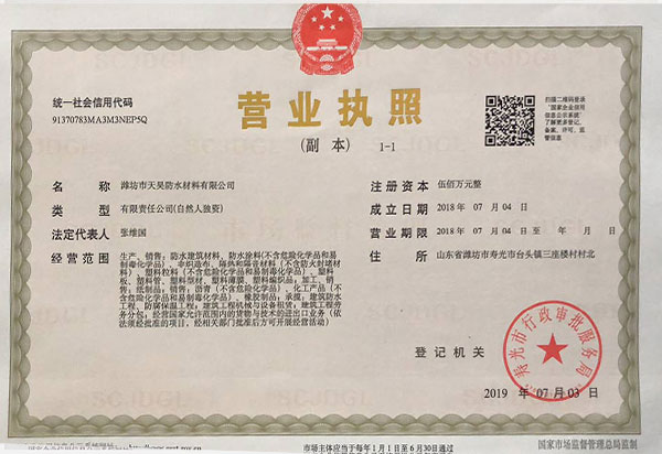 名 稱 濰坊市天昊防水材料有限公司